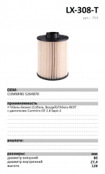 Фильтр топливный Luxe ГАЗель-Бизнес двигатель Cummins ISF 2.8 (Евро-3) LX-308-T
